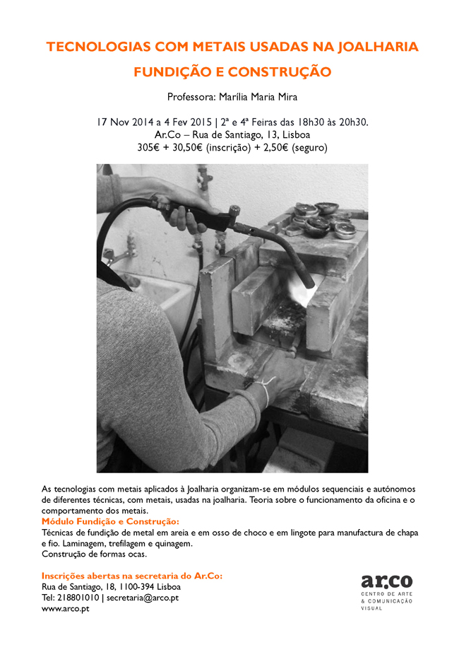 Tecnologias com metais usadas na Joalharia Fundição e ConstruçãoProf. Marília Maria MiraAr.CoLisboa17 Nov 2014 a 4 Fev 2015