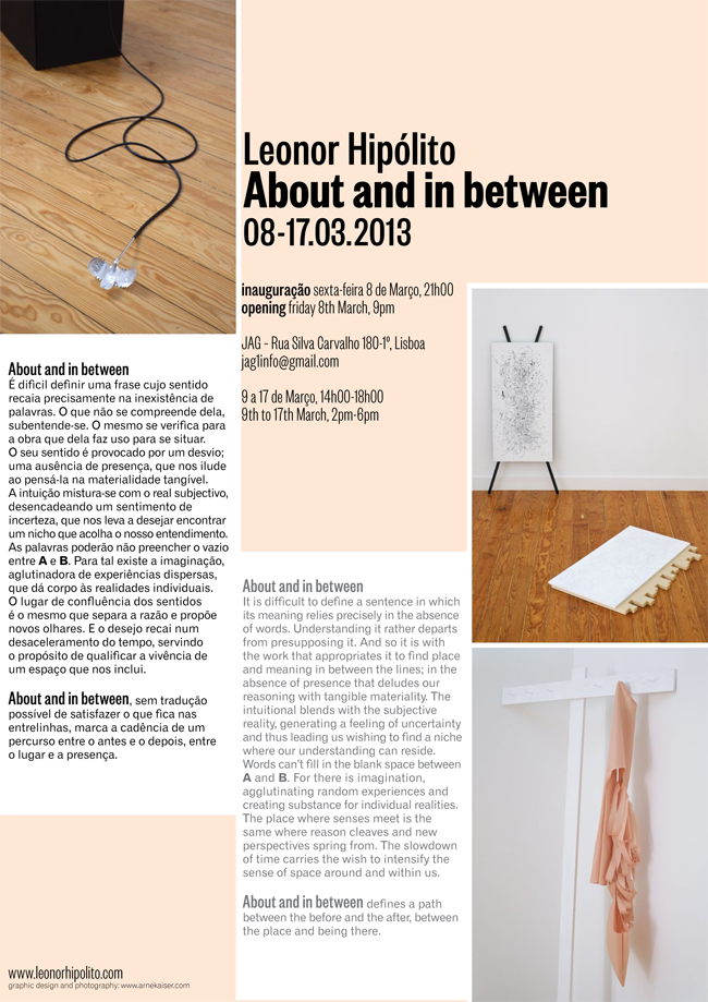 About and in between, sem tradução possível de satisfazer o que fica nas entrelinhas, marca a cadência de um percurso entre o antes e o depois entre o lugar e a presença.