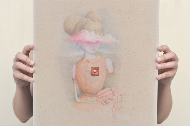Grief - Denial | ilustração e pin | cartão prensado, lápis de cor, cobre, prata | 2013
